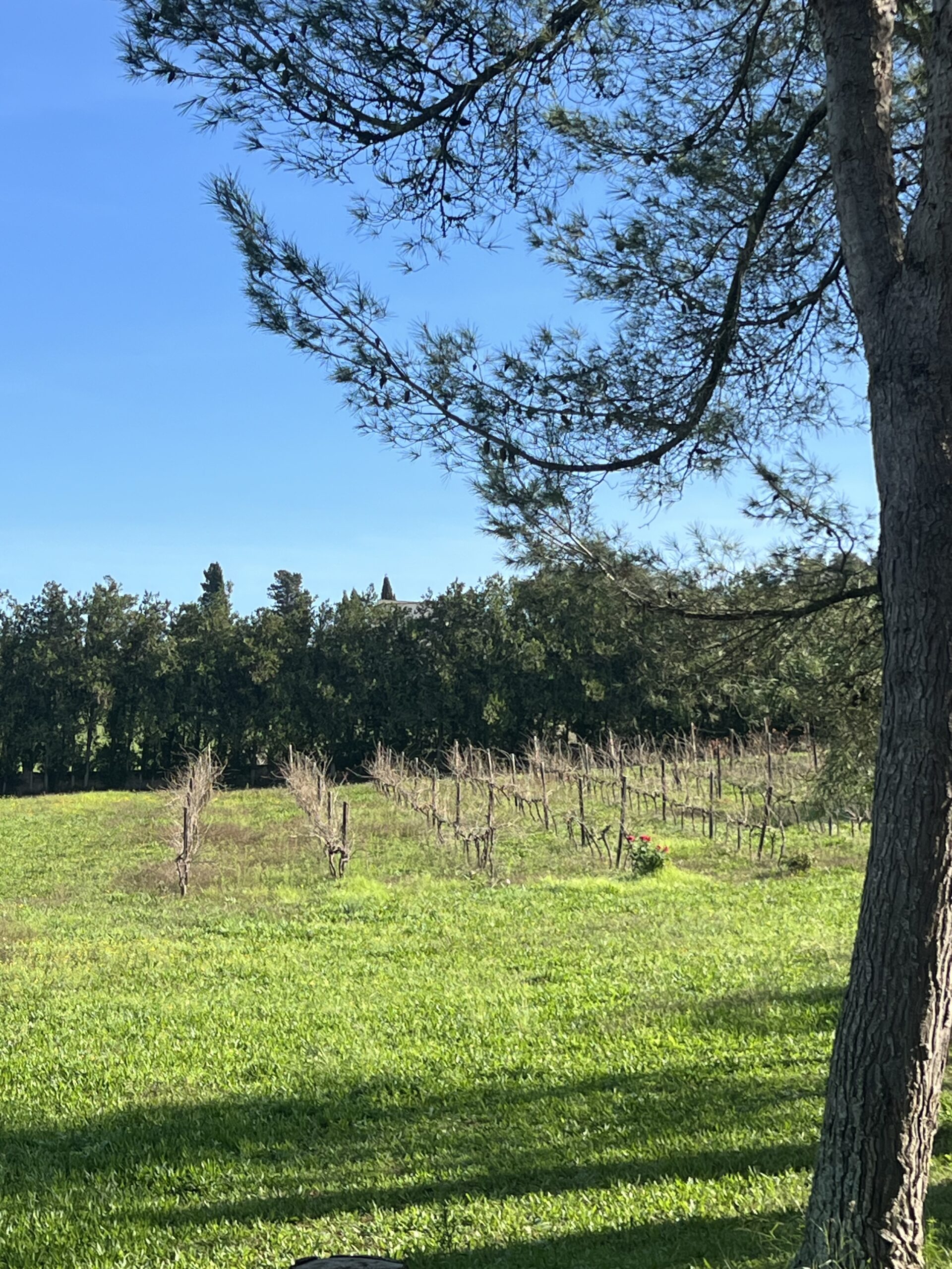 Un pequeño viñedo completa el conjunto, con una producción anual de unas 300 botellas de vino tinto, ideal tanto para consumo propio como para agasajar a los invitados.