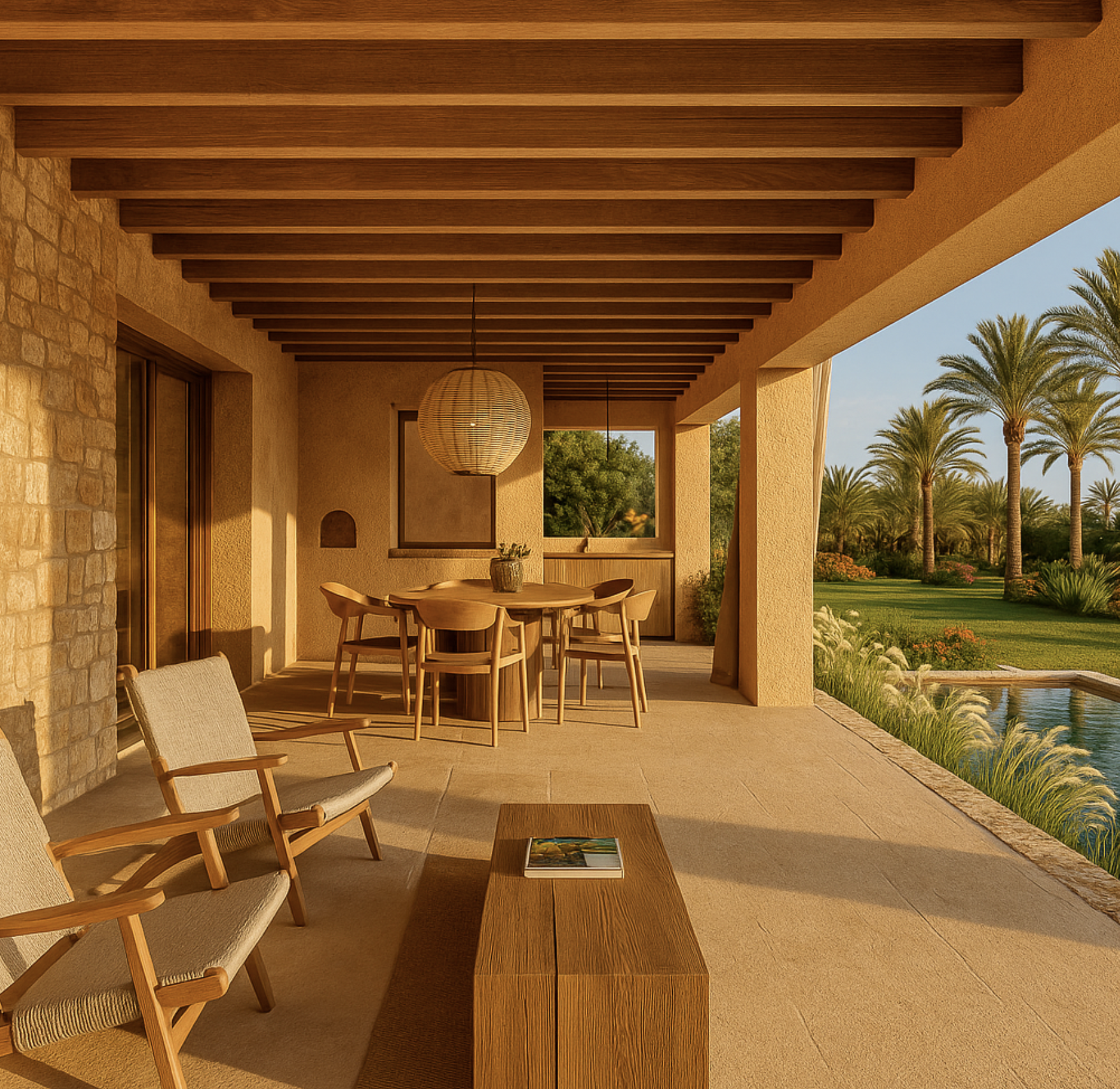 Estamos diseñando una finca absolutamente acogedora con aproximadamente 225 metros cuadrados de espacio habitable, equipada con tres dormitorios y tres baños, un salón-comedor y cocina de planta abierta salón-comedor y cocina. Las grandes puertas francesas dejan entrar la luz desde ambos lados de la casa y conectan el interior con el exterior.