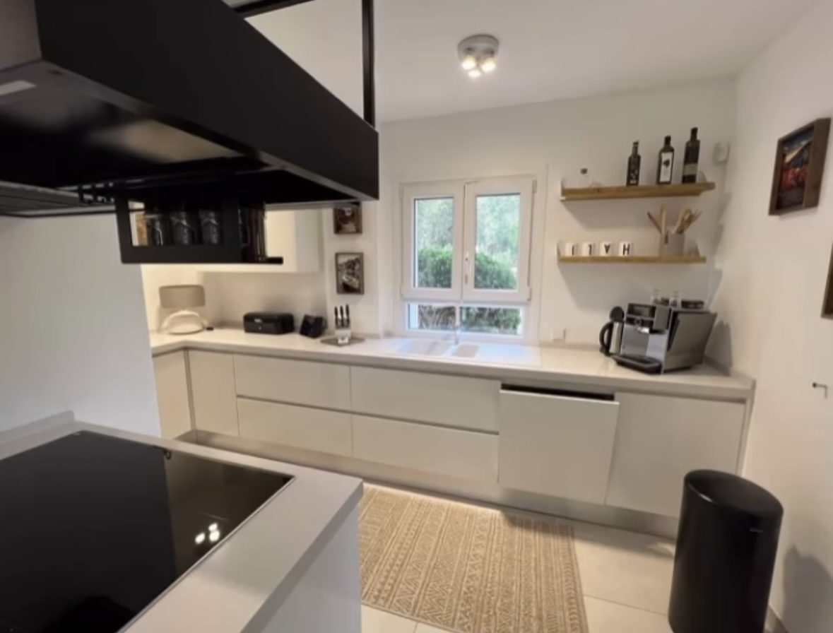 Wo früher eine abgetrennte Küchenstruktur mit dunkler Speisekammer den Raum verkleinerte, ist heute ein offener, lichtdurchfluteter Mittelpunkt des Hauses entstanden. Durch die Öffnung der Flächen und die klare Neuorganisation des Grundrisses verbindet sich die Küche nun harmonisch mit dem Patio – modern, großzügig und einladend.